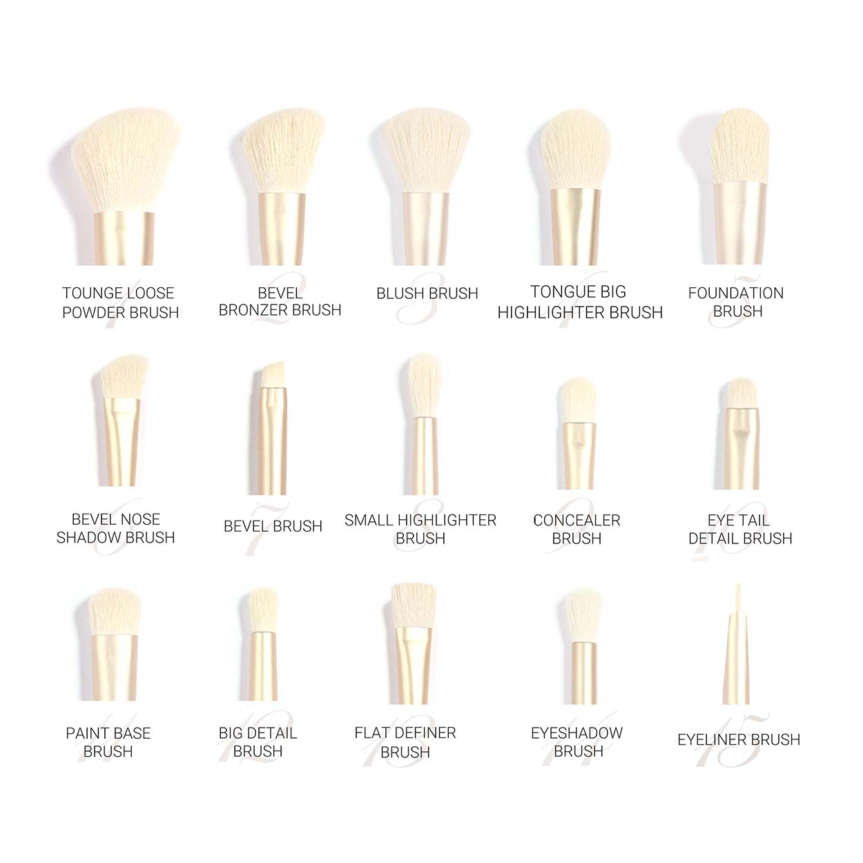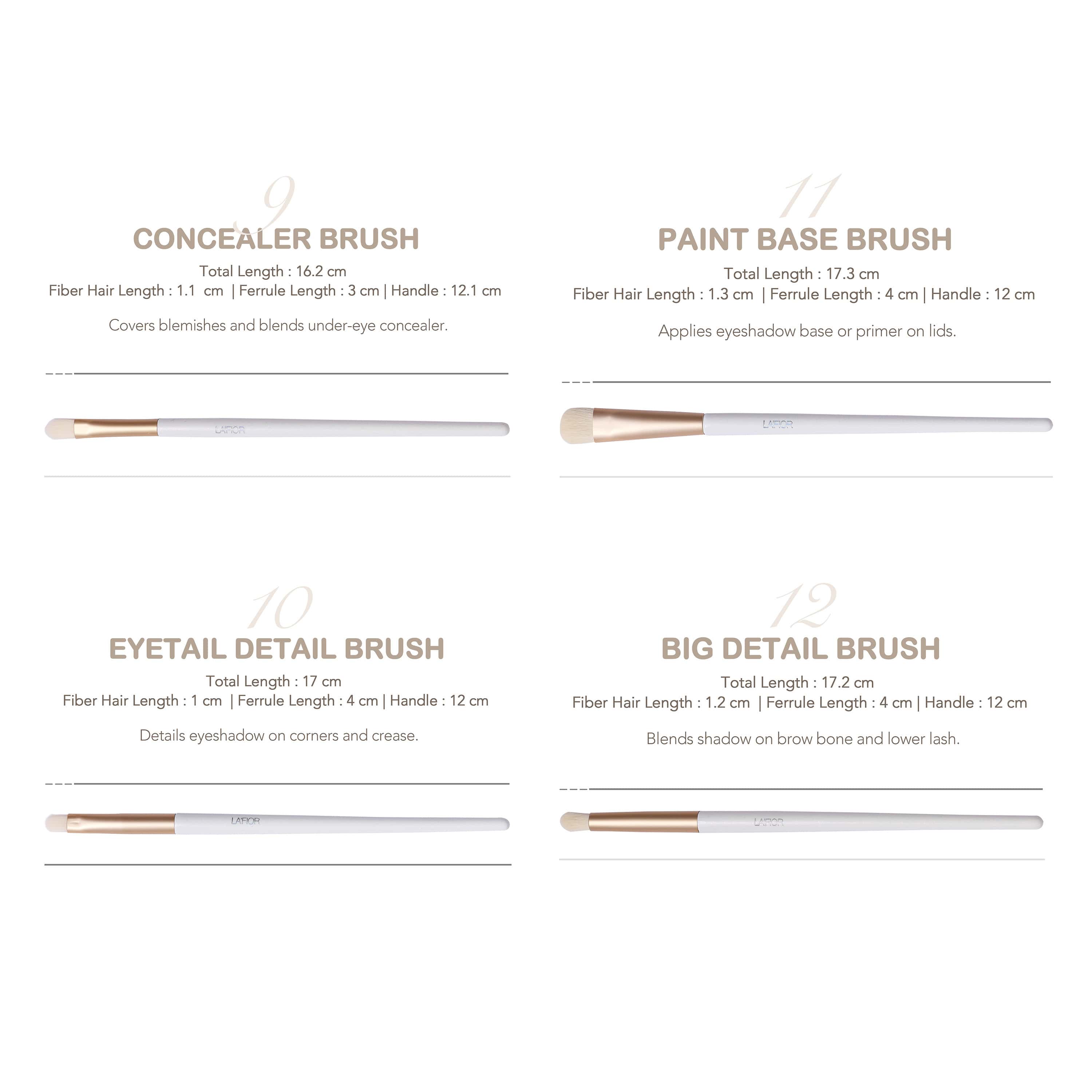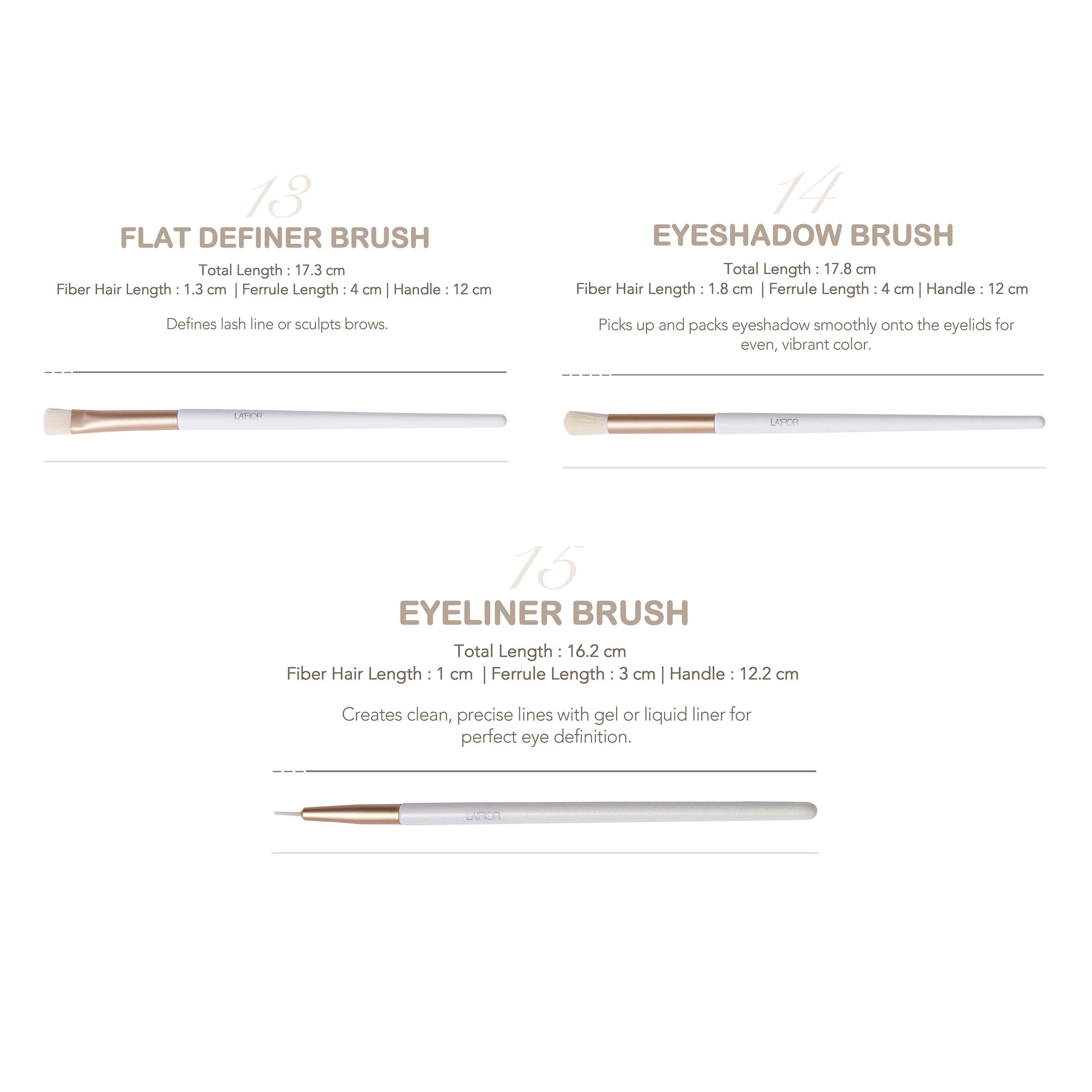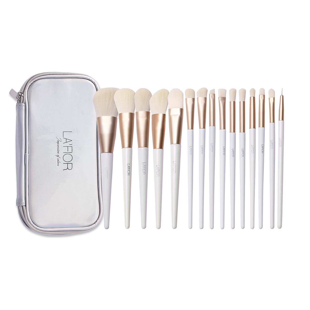 LA'FIOR White Pearl 15 Pcs Professional Brush Set with Bag - LF-001